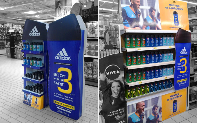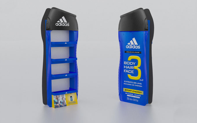 Floor Standing Units for men products. Material: Mdf, Vinyl.