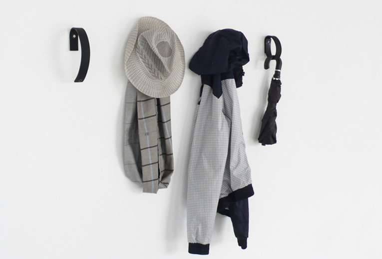 Strip Ring is an individual hanger designed for "outside wear", such as umbrellas, scarfs, handbags, coats, hats and more.A single strip of natural rubber is hold together in its extremities, with a snap metal button, creating an elliptical ring.
